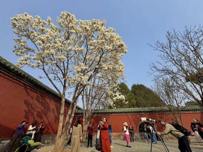 春风拂过京城,天坛斋宫迎来春日按捺好意思景。玉兰纯洁的似锦与朱红的宫墙、翠绿的琉璃瓦交汇,成为市民踏青寻芳的热点打卡点。