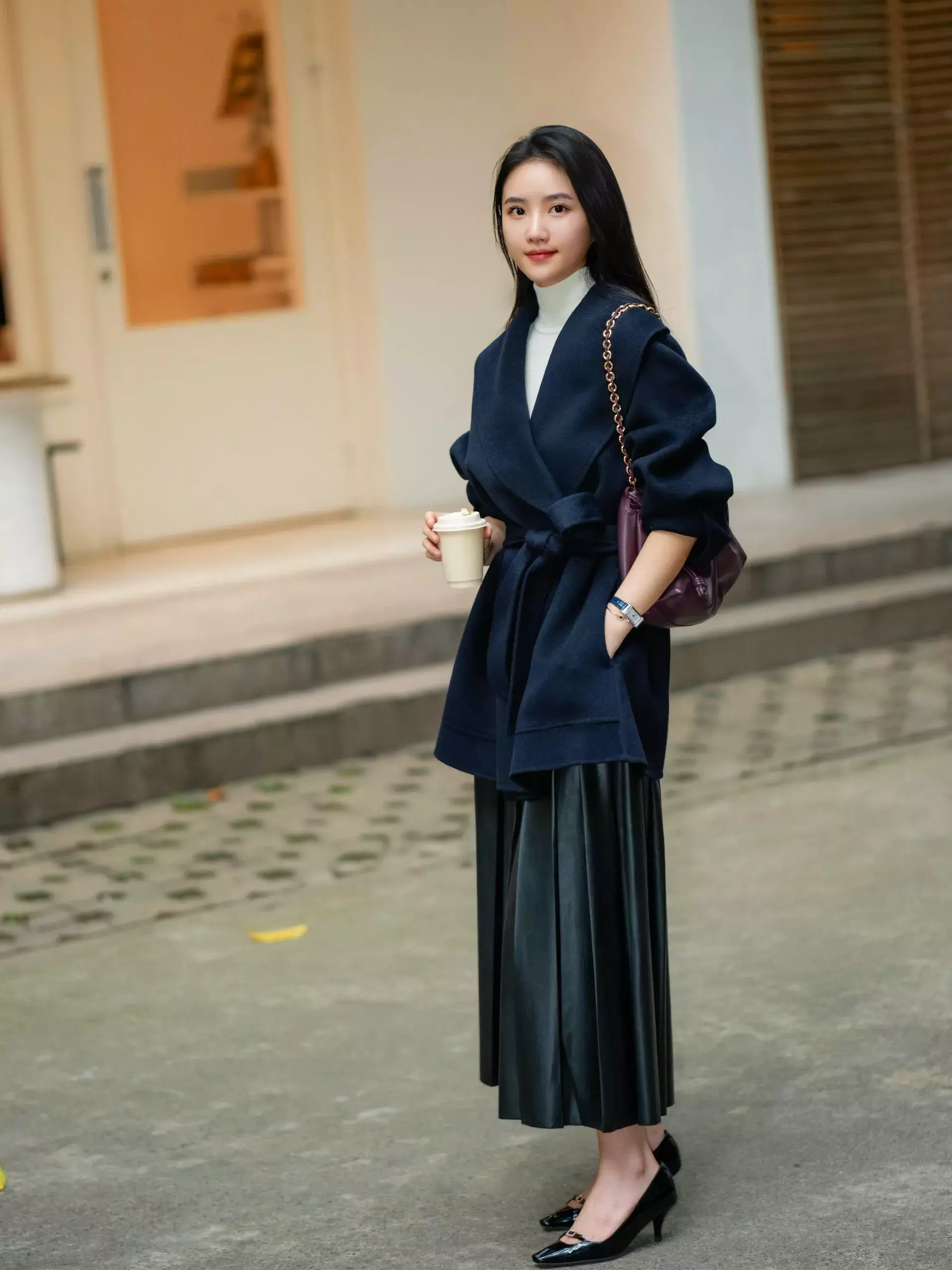 第四章节:短大衣搭配裙子,优雅又大方