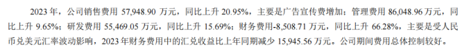 在2023年报里就依然阐扬主若是汇兑收益比上年同时减少1.59亿元。