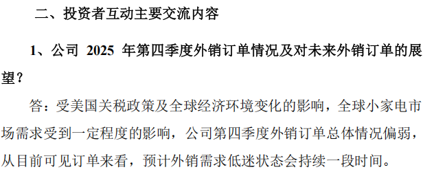 公司的这份事迹,其确实2025年11月3日三季报调研纪要里惩办层依然有所磋商:公司第四季度外售订单总体情况偏弱,磋商外售需求低迷景况会握续一段期间。